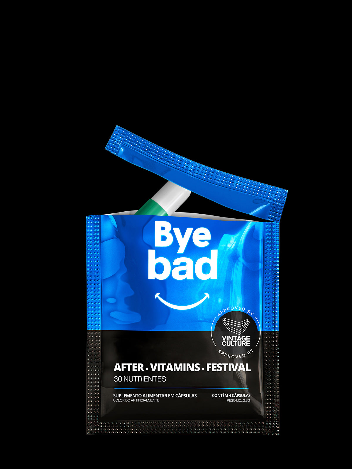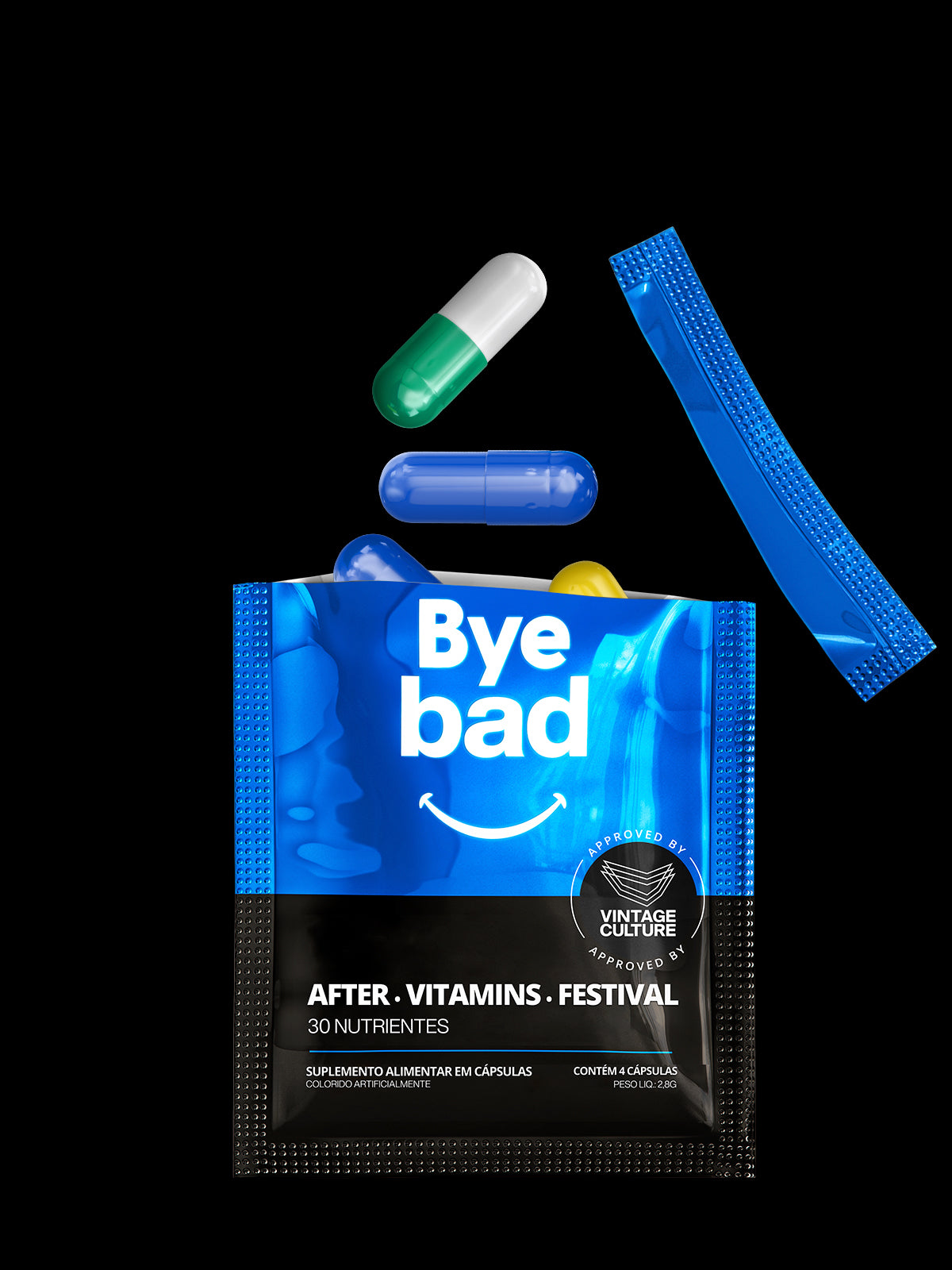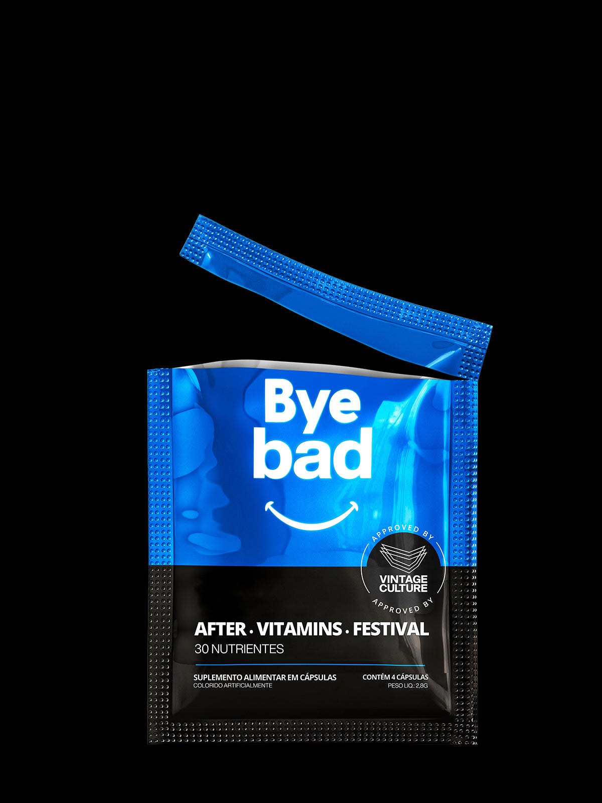 Bye Bad é uma combinação cuidadosamente selecionada de vitaminas, minerais, aminoácidos e substâncias bioativas, formulada por farmacêuticos especializados que utilizam rigorosos critérios para seleção. Nosso blend foi criado pensando em seus momentos intensos e em como você pode desfrutar deles da melhor forma possível.