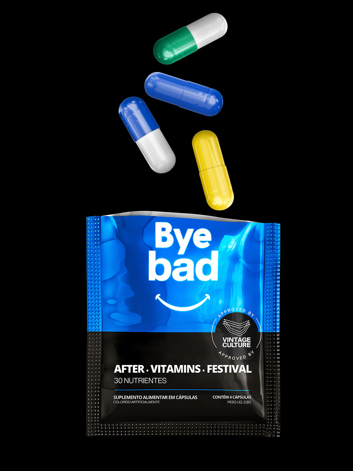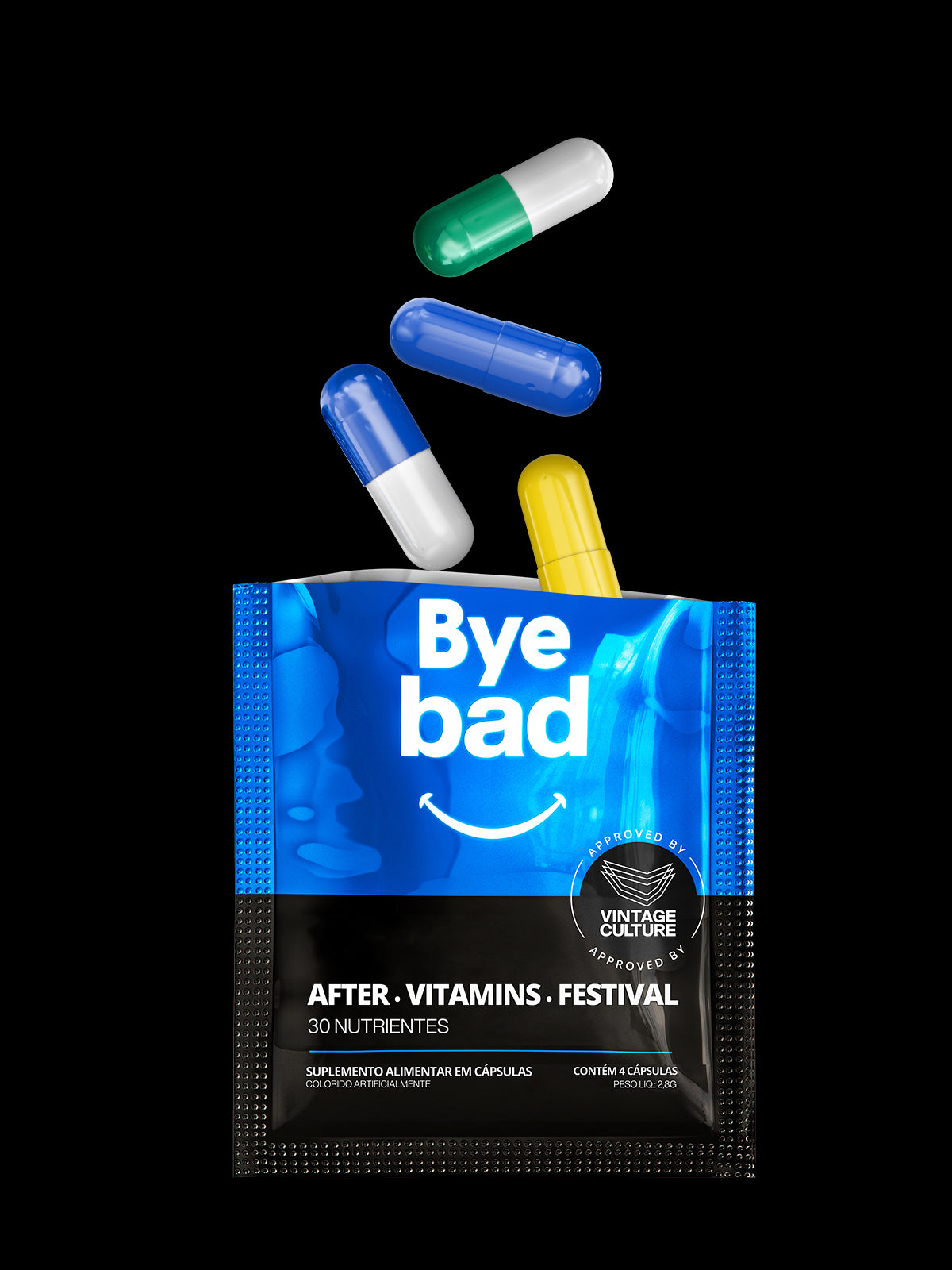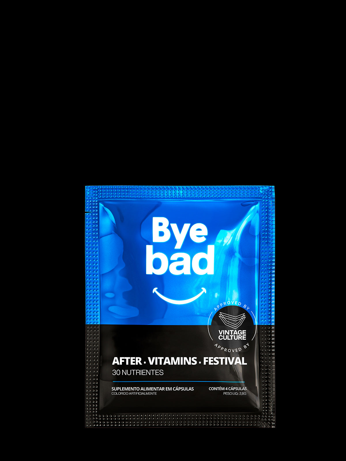 Bye Bad é uma combinação cuidadosamente selecionada de vitaminas, minerais, aminoácidos e substâncias bioativas, formulada por farmacêuticos especializados que utilizam rigorosos critérios para seleção. Nosso blend foi criado pensando em seus momentos intensos e em como você pode desfrutar deles da melhor forma possível.